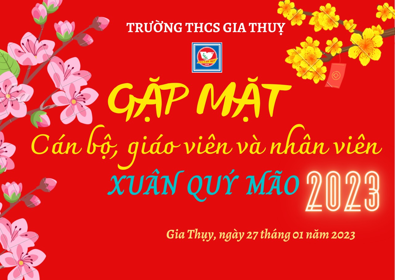 Hòa trong không khí từng bừng náo nức của cả nước chào mừng xuân Quy Mão, hôm nay ngày 27 tháng 01 năm 2023 (tức ngày mùng 6 tháng Giêng năm Quý Mão), trường THCS Gia Thụy long trọng tổ chức buổi gặp mặt đầu xuân để giao lưu chúc mừng xuân mới thắng lợi mới của nhà trường.
