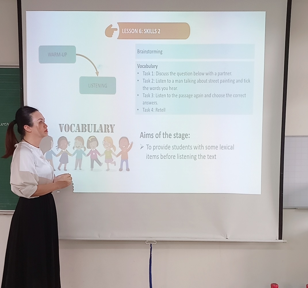 Thực hiện chỉ đạo của Ban giám hiệu trường THCS Gia Thụy và kế hoạch năm học 2022-2023 nhằm nâng cao chất lượng trong công tác giảng dạy và học môn Tiếng anh 7. Ngày 15/11/2022 tại lớp 7A8 cô giáo Trần Thị Thúy Hậu đã thực hiện tiết chuyên đề dạy kỹ năng nghe và viết. Đến dự tiết chuyên đề có các đồng chí trong BGH cùng các đồng chí giáo viên trong tổ năng khiếu. Tiết dạy cô giáo cũng đưa ra các kỹ năng nghe và viết, cách sử dụng có hiệu quả một số ứng dụng hỗ trợ việc học, phần mềm trong giảng dạy kết hợp với trò chơi.... Góp phần tạo không khí sôi nổi, vui vẻ cho tiết học.