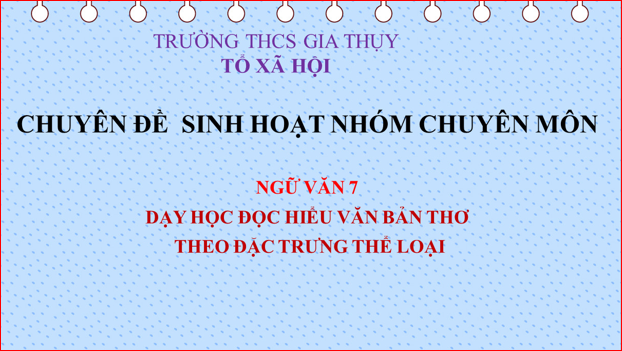 Thông qua buổi trao đổi chuyên môn, nhóm Ngữ văn 7 đã thống nhất để dạy một văn bản thơ cần thực hiện các yêu cầu như sau: