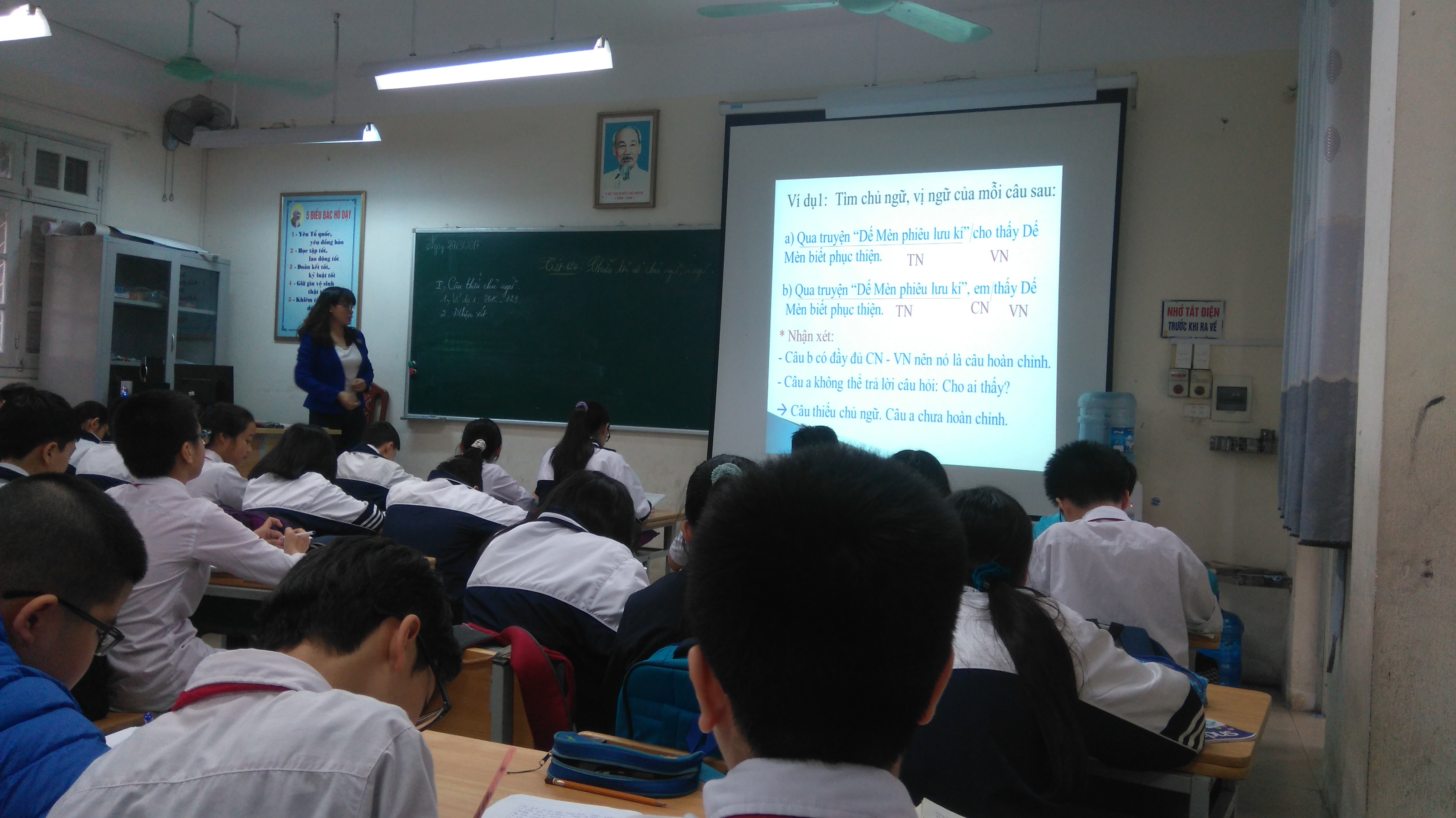 Trong tiết chuyên đề Ngữ văn ngày 29 tháng 3 mà đồng chí Đàm Mai Hương thực hiện ở lớp 6A5 Bài 30 Tiết 120: Chữa lỗi về chủ ngữ và vị ngữ, các em học sinh đã hiểu và nắm rõ được tại sao khi nói và viết câu phải có đủ các thành phần chính chủ ngữ và vị ngữ? Các em tìm và phát hiện ra các lỗi câu sai , từ đó chỉ ra cách sửa chữa thành câu văn đúng. Nói đúng, viết đúng chưa đủ còn cần phải nói hay, viết giỏi. Qua tiết học, các em hiểu được rằng những lời nói tưởng rằng rất thân mật với bạn bè và người lớn bấy lâu nay của mình là những lời lẽ cộc lốc, thiếu thành phần, sai về cả ngữ pháp lẫn thái độ. Từ đó, các em đã rút ra được cách nói năng, diễn đạt cẩn trọng hơn, trau chuốt hơn, đầy đủ nội dung và đúng ngữ pháp.