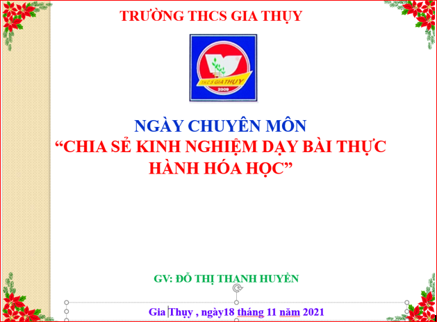 Theo kế hoạch và phân công của nhà trường, 15h45 ngày 18/11/2021 Tổ Hóa – Sinh – Địa đã thực kiến kế hoạch “Ngày sinh hoạt chuyên môn” với nội dung chia sẻ về kinh nghiệm dạy bài thực hành hóa học. Buổi sinh hoạt có sự tham gia của BGH, tổ trưởng, tổ phó và các nhóm trưởng chuyên môn.