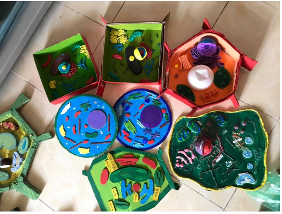 Sản phẩm Mô hình cấu tạo một tế bào điển hình người - CLB STEM 8 Từ nguyên liệu: Bìa cứng, màu vẽ, miếng xốp, bóng nhựa, băng keo, giấy màu,..