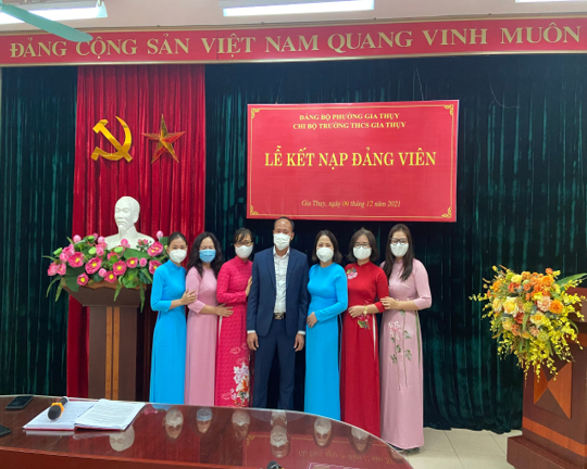 Căn cứ Điều lệ Đảng Cộng sản Việt Nam được Đại hội Đại biểu toàn quốc lần thứ XI của Đảng thông qua ngày 19/01/2011và Quy định số 45-QĐ/TW thi hành Điều lệ Đảng quy định chi tiết một số điều, khoản trong Điều lệ Đảng, được sự đồng ý của Đảng uỷ Phường Gia Thụy, đúng 15h chiều ngày 9/12/2021, Chi bộ Trường THCS Gia Thụy tổ chức Lễ kết nạp đảng viên cho quần chúng Nguyễn Thị Ngoan giáo viên tổ Xã hội, quần chúng Đỗ Thị Hồng Nhung, giáo viên tổ Hóa Sinh Địa và quần chúng Trịnh Bá Tuân, giáo viên Năng khiếu vào Đảng Cộng sản Việt Nam.