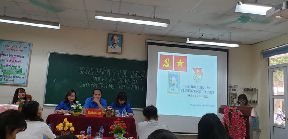 Tiếp theo, đại hội bầu ra đoàn chủ tịch gồm 3 đ/c: Đ/c: Nguyễn Hoa Minh Tâm – bí thứ đoàn trường nhiệm kỳ 2017- 2019, đ/c: Trịnh Bá Tuân - ủy viên ban chấp hành nhiệm kỳ 2017 – 2019, đ/c: Đỗ Thị Hồng Nhung – GV nhà trường và đoàn thư ký đại hội gồm 3 đ/c: Đ/c: Hoàng Thị Nguyệt, đ/c/ Phạm Thị Huyền, đ/c: Phùng Thị Vân Anh. Sau khi thông quan chương trình và quy chế Đại hội, đ/c: Nguyễn Hoa Minh Tâm – bí thứ đoàn trường nhiệm kỳ 2017- 2019 đã trình bày báo cáo tóm tắt kết quả thực hiện nghị quyết công tác Đoàn và phong trào Thanh niên nhiệm kỳ 2017 – 2019 cũng như phương hướng công tác nhiệm kỳ 2019- 2022. Toàn thể đại hội đã thông qua đề án nhân sự BCH nhiệm kỳ mới với những căn cứ, yêu cầu và tiêu chuẩn quan trọng. Từ đây, dựa vào quy chế, tiêu chuẩn Đoàn chủ tịch đã công bố với Đại Hội các đ/c được chi Đoàn tín nhiệm giới thiệu vào danh sách ứng cử BCH nhiềm kỳ 2019 – 2022 với 3 đ/c. Dựa vào kết quả ban kiểm phiếu, danh sách ứng cử BCH Đoàn trường THCS Gia Thụy Nhiệm kỳ 2019 – 2022 đã được công bố gốm 3 đ/c: