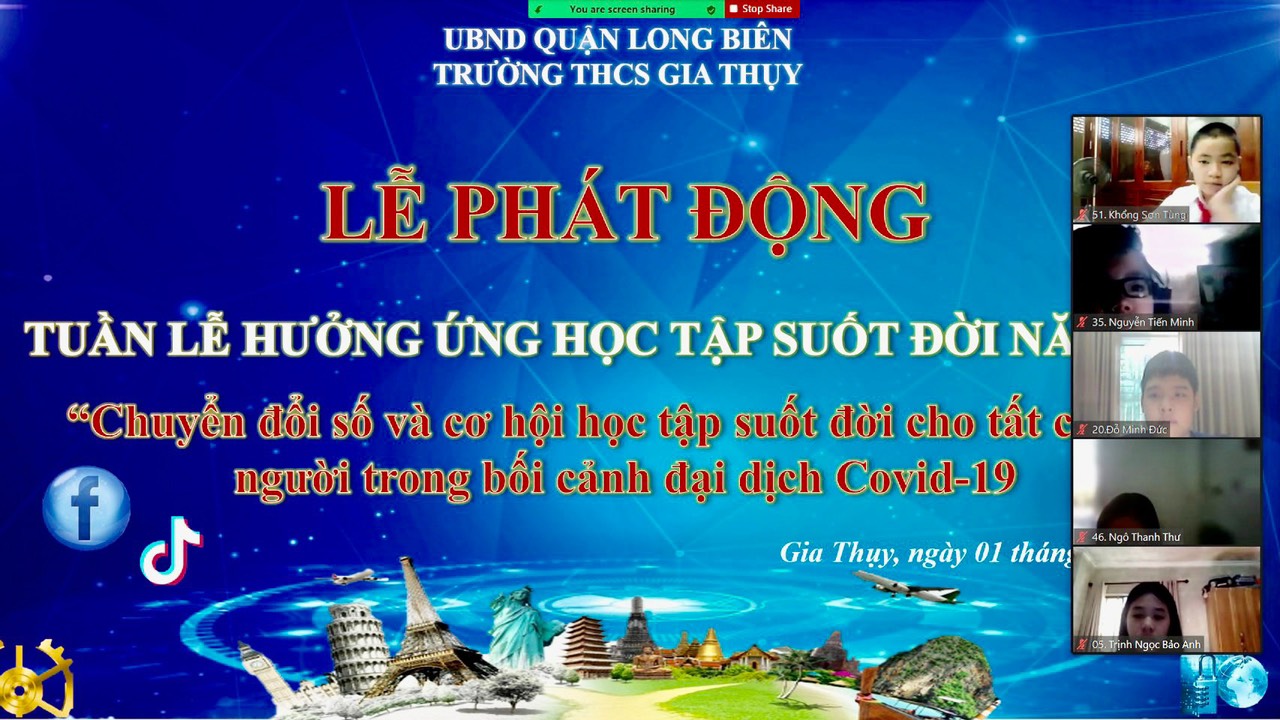 Thực hện sự chỉ đạo của lãnh đạo ngành giáo dục quận Long Biên, Ban giám hiệu trường THCS Gia Thụy đã phát động “Hưởng ứng tuần lễ học tập suốt đời” trong toàn thể cán bộ, giáo viên, nhân viên, PHHS và HS nhà trường