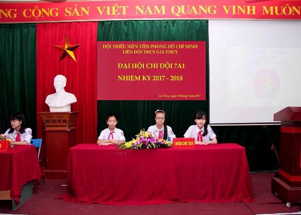 Trong các mảng hoạt động của Liên Đội thì Đại hội chi đội luôn được Ban giám hiệu, Ban thiếu nhi nhà trường quan tâm chú trọng hàng đầu. Mỗi năm, Liên đội đều cử ra một chi Đội có nhiều thành tích xuất sắc trong công tác Đội của năm học trước, có đội ngũ cán bộ chi Đội hăng hái, năng nổ, nhiệt tình để thực hiện Đại hội chi Đội mẫu. Năm học 2017 – 2018 này, Liên Đội THCS Gia Thụy đề cử chi Đội 7A1, một chi đội đã đóng góp rất nhiều thành tích cho phong trào chung của nhà trường tổ chức thành công Đại hội chi đội mẫu vào 15h30’ ngày 28/9/2017.