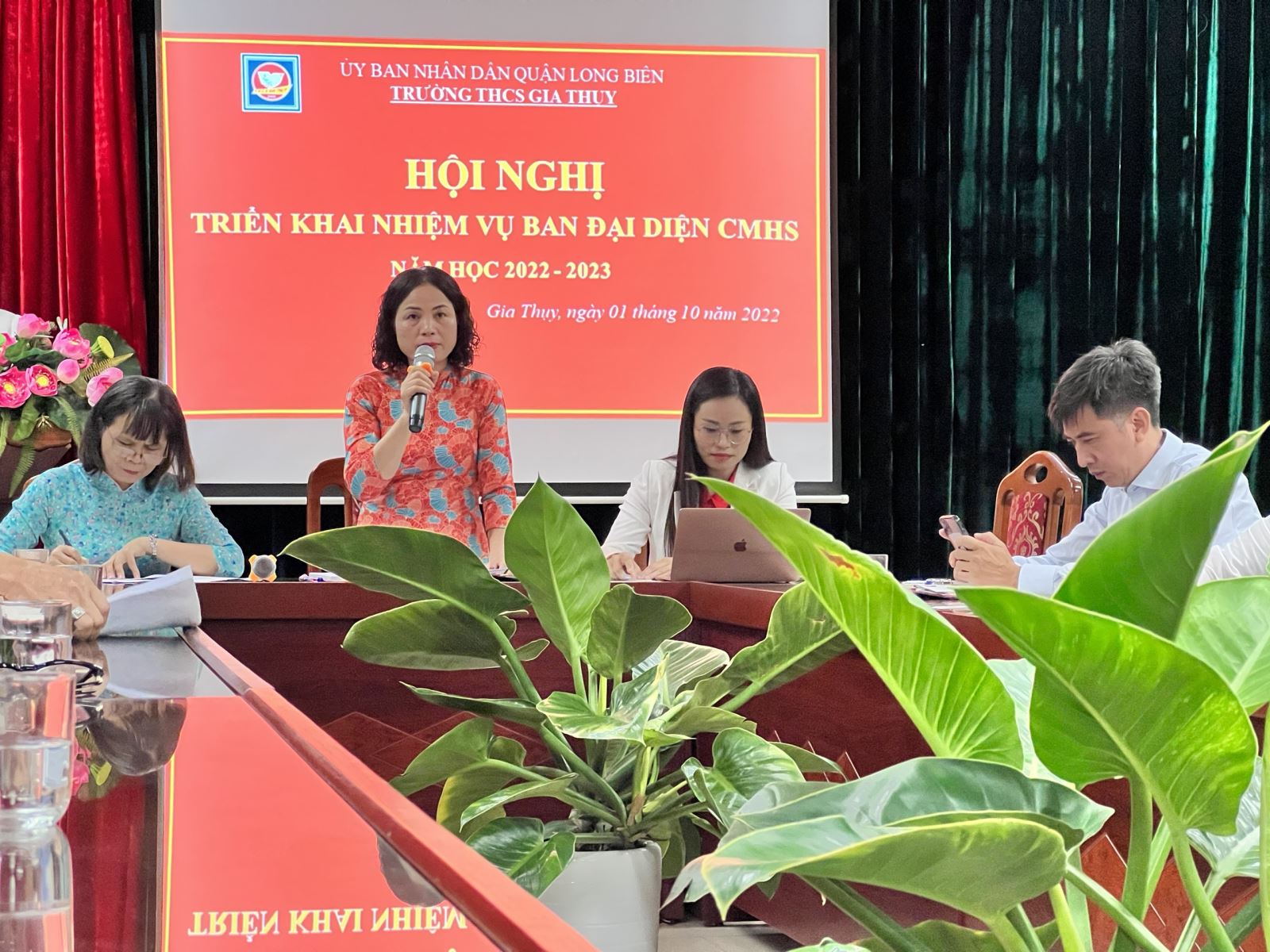 Trong phần thứ hai, đồng chí Nguyễn Thị Mỹ Linh – Bí thư chi bộ - Hiệu trưởng nhà trường, đã chủ trì Hội nghị triển khai nhiệm vụ của Ban đại diện học sinh lớp và nhà trường