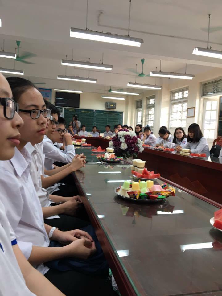 Đúng 16h30 phút, buổi gặp mặt được bắt đầu. Mở đầu buổi gặp mặt, cô Nguyễn Thị Hồng Thanh – Hiệu trưởng nhà trường lên phát biểu khai mạc. Trong bài phát biểu, cô bày tỏ sự cảm ơn đối với sự giúp đỡ, hợp tác, thấu hiểu của các vị phụ huynh dành cho nhà trường trong công tác bồi dưỡng, rèn luyện các đội tuyển thời gian vừa qua. Cô hi vọng trong thời gian tiếp theo, cha mẹ học sinh sẽ tiếp tục là lực lượng góp sức cùng nhà trường trong công tác bồi dưỡng học sinh giỏi. Cô cũng dành nhiều thời gian động viên tinh thần, nhắc nhở các em cần chuẩn bị tốt mọi mặt để tham gia kì thi một cách tốt nhất.