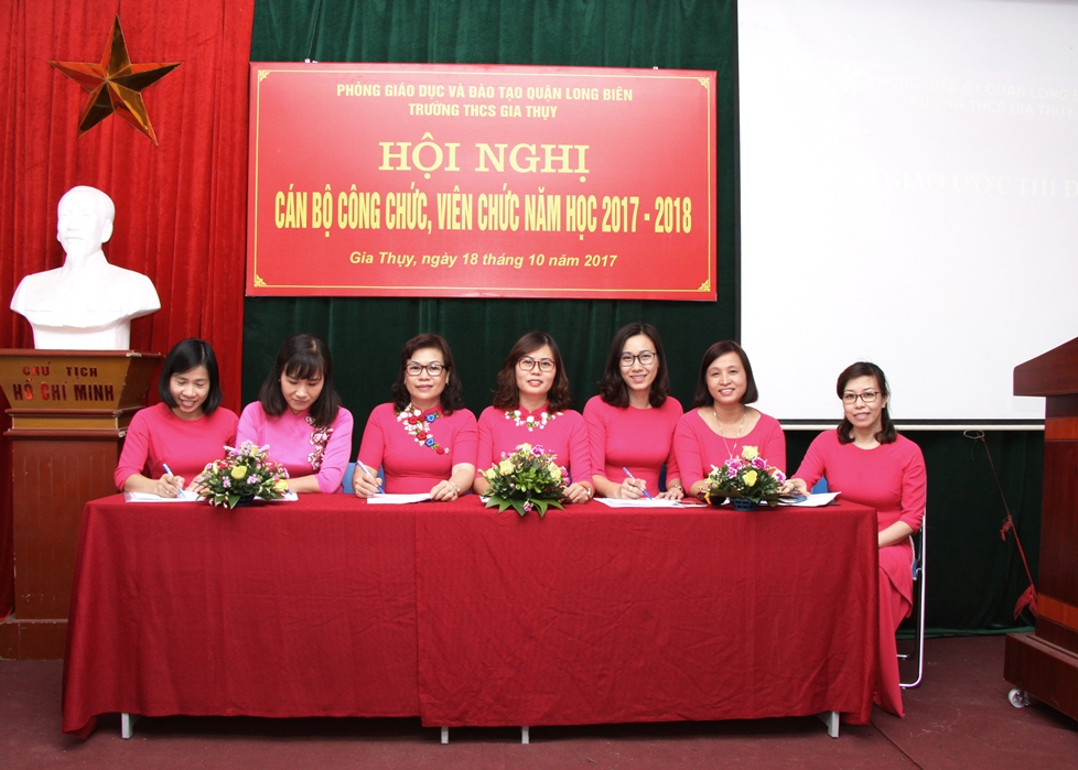 Ngày 18 /10/2017, được sự đồng ý của Liên đoàn Lao động quận và Chi bộ trường THCS Gia Thụy, Thủ trưởng đơn vị và công đoàn Trường THCS Gia Thụy tổ chức hội nghị viên chức và phát động thi đua năm học 2017 - 2018 với tinh thần dân chủ, thẳng thắn và xây dựng.