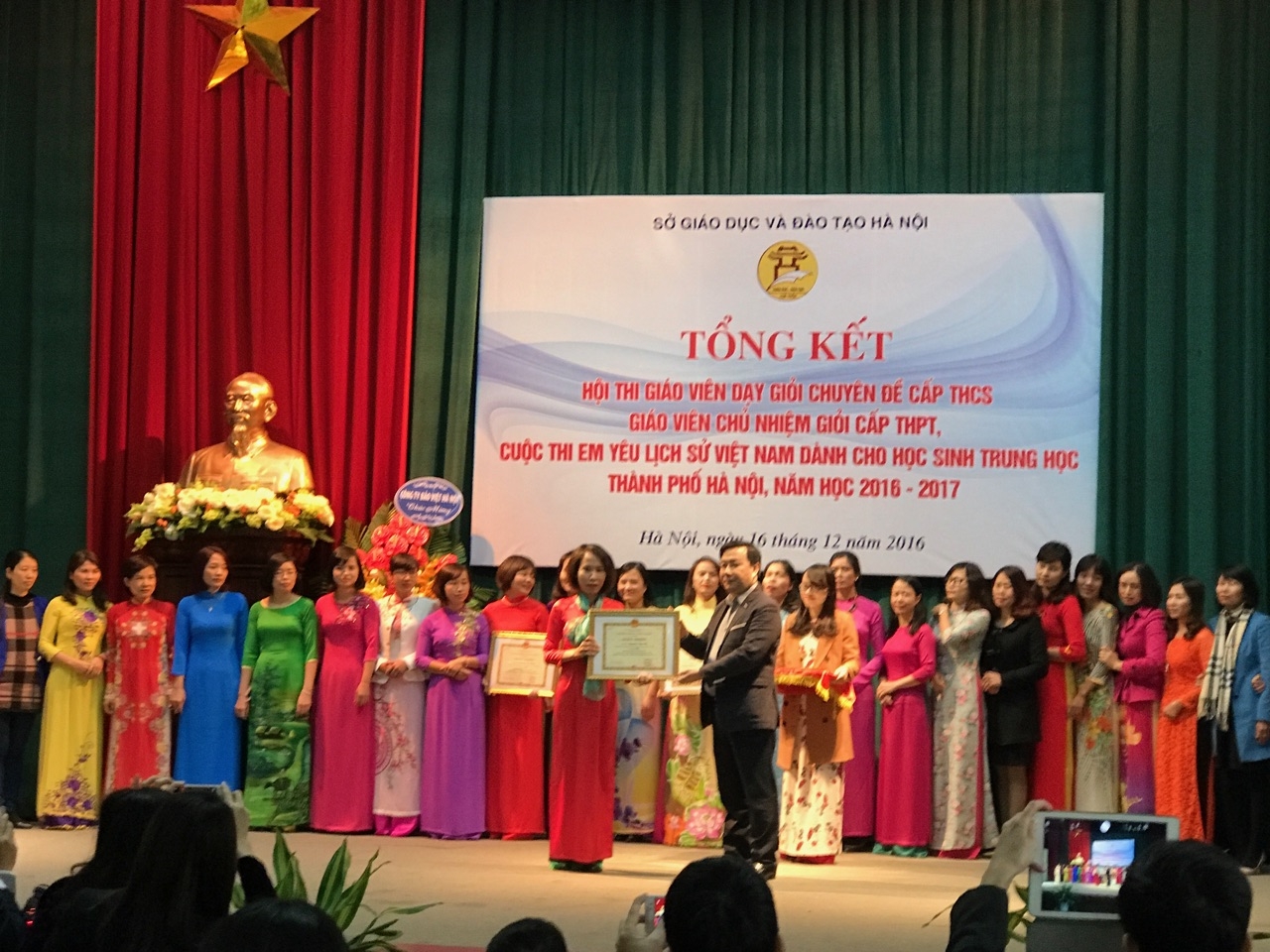 Tại buổi lễ, cô giáo Nguyễn Thu Hà vinh dự được nhận giấy khen của Sở giáo dục và đào tạo Hà Nội. Cô đã đạt giải Nhì trong Hội Thi giáo viên dạy giỏi chuyên đề “giáo dục nếp sống thanh lịch, văn minh” cho học sinh trung học cơ sở, cấp Thành phố năm học 2016- 2017. Chúc mừng thành tích của cô giáo và nhà trường đã đạt được trong hội thi vừa rồi.