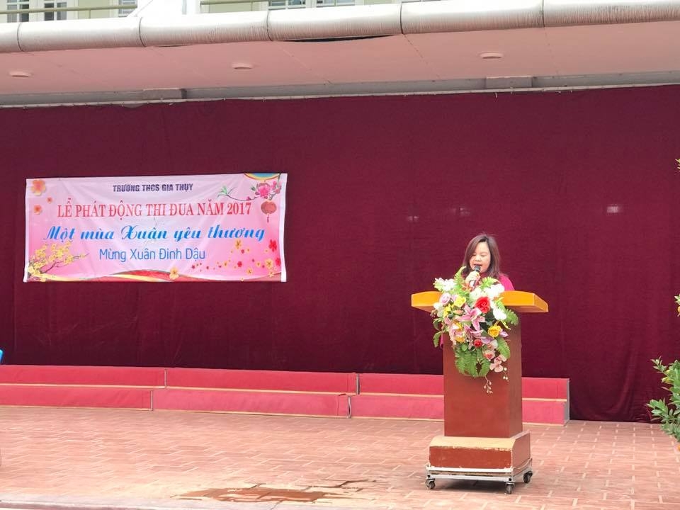Buổi lễ chào cờ chào xuân mới. Với tinh thần và ý chí quyết tâm, học tập và rèn luyện theo gương đạo đức Hồ Chí Minh, tập thể Cán bộ giáo viên nhân viên và học sinh toàn trường. Trong buổi lễ phát động, cô giáo Lương Thị Thu Hằng đọc bản phát động thi đua nhà trường.